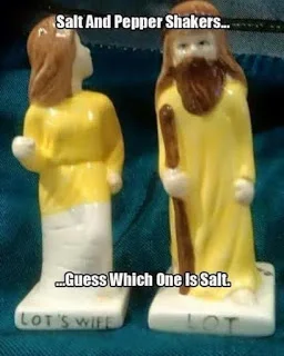 "But Lot's wife looked back and she became a pillar of salt." Genesis 19:26