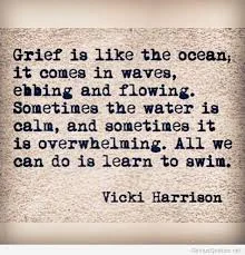 We learn that the world continues to spin not taking note of our despair. Things that once seemed so important seem insignificant. Our own deaths seem more real. One day we are smiling and feeling back to "normal" when out of nowhere, like a thief in the night, an ocean of sadness strikes from behind knocking our feet out from under us.